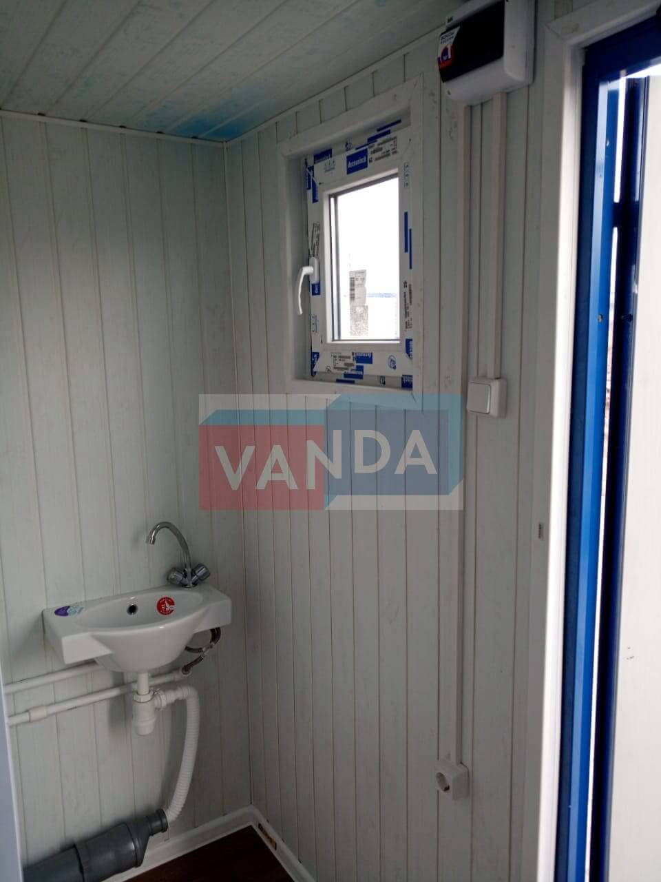 Блок контейнер сантехнический №1 изготавливается из несущего каркаса (верхняя и нижняя обвязка): швеллер 100х50х3 мм., угловые стойки: сложно - гнутый угол 90х90х3 мм., крыша блок-контейнера: металл сварной 0,9-1 мм., качественная наружная отделка: оцинкованный профлист, внутренняя отделка стен: Вагонка ПВХ, внутренняя отделка потолка: Вагонка ПВХ, вспомогательный деревянный каркас (стены): брусок 40х75 мм., лаги пола: обрезная доска 40х100 мм., лаги потолка: обрезная доска 40х100 мм., выполнено утепление: Минеральная вата «ISOVER» – 50 мм. и пароизоляция: плёнка техническая, черновой пол состоит из: обрезная доска 20 мм. (2 сорт), чистовой пол покрыт: ДСП строительное 16 мм., отделка пола: линолеум бытовой. Контейнер комплектуется окнами: ПВХ однокамерное, одностворчатое, п/о 600х600, входной дверью: ДГ 21-8 обшита снаружи оцинкованным листом, врезной замок и внутренними дверями: ДГ 21-8 (при наличии перегородки). Если в БК присутствуют перегородки, то для них используется: брусок 40х50 мм. В блок контейнере есть электро-обеспечение: электрика в кабель канале с УЗО, установлена сантехника: унитаз в комплекте - 1 шт.;